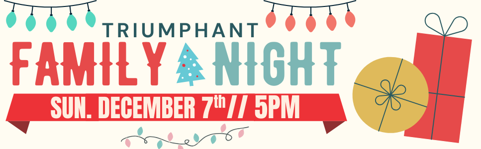 Join us for a cozy and joy filled evening at Triumphant Family Night on Sunday, December 7 at 5 PM. This is the perfect moment to slow down, make memories, and celebrate the season together as one big family.