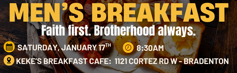 Join us for the Triumphant Men’s Breakfast on Saturday, January 17th at 8:30 AM at Keke’s Breakfast Cafe in Bradenton.